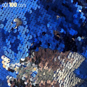 Пайетка двусторонняя на сетке, цвет - синий (электрик)/серебро. Длина рулона от 40 метров, ширина 1,5 м.