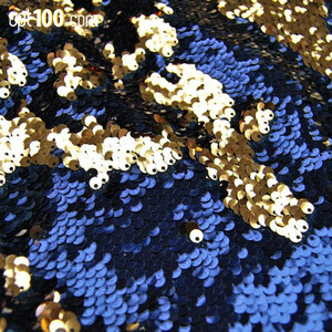 Пайетка двухсторонняя на сетке, цвет - синий (электрик)/золото. Длина рулона от 40 метров, ширина 1,5 м.