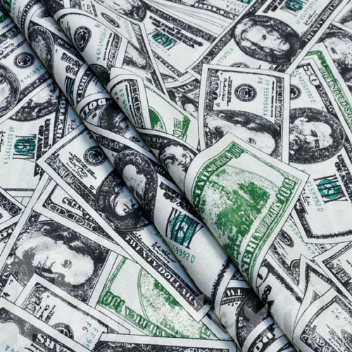 Бязь принт Gold Lux - доллары. Длина рулона 50 метров, ширина ткани - 2,2 м. Плотность 125 г/м2. Состав: хлопок + полиэстер. Производство - Пакистан.