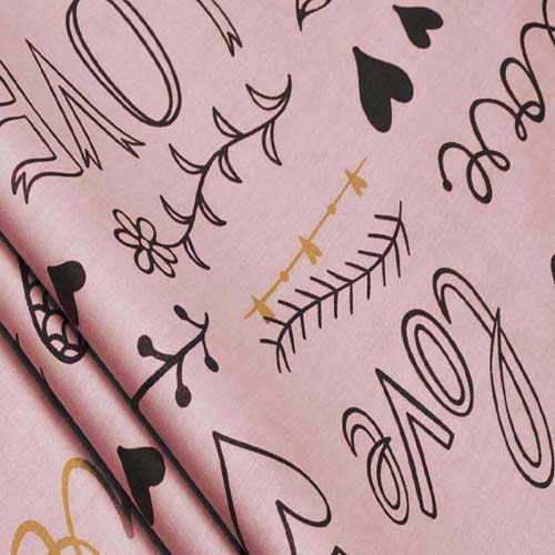 Бязь принт Gold Lux - Love. Длина рулона 50 метров, ширина ткани - 2,2 м. Плотность 125 г/м2. Состав: хлопок + полиэстер. Производство - Пакистан.