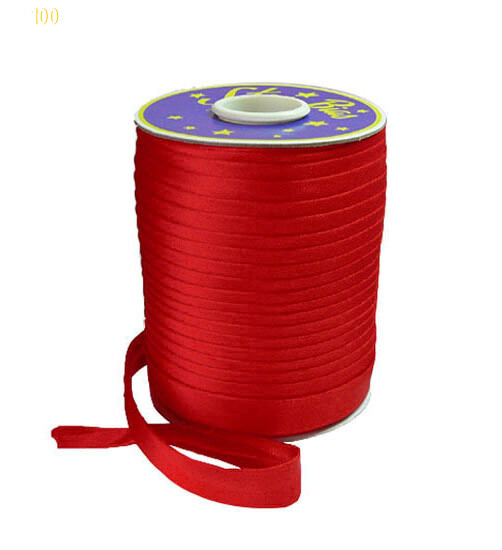 Косая бейка (атласная) - цвет красный. Ширина 15 мм, 105 м длина. Производство Китай.