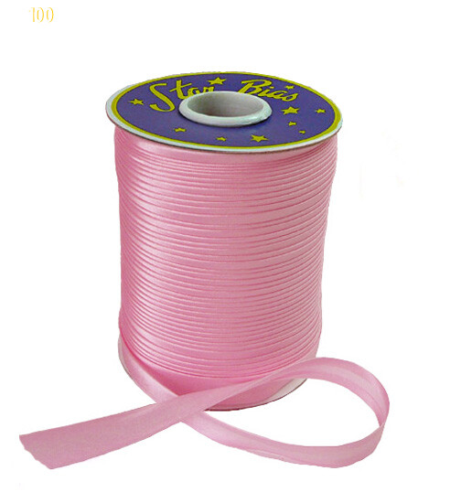 Косая бейка (атласная) - цвет светло-розовый. Ширина 15 мм, 105 м длина. Производство Китай.