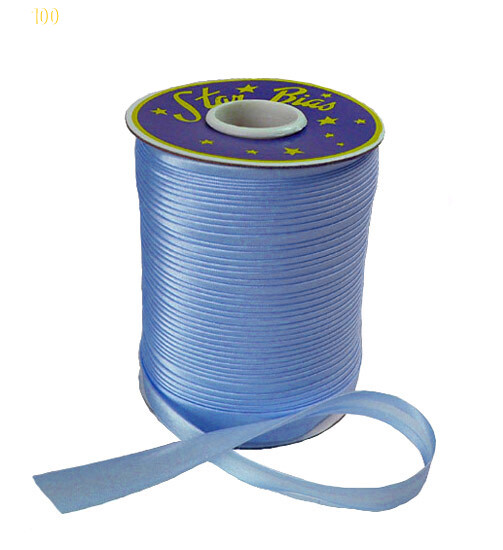 Косая бейка (атласная) - цвет голубой. Ширина 15 мм, 105 м длина. Производство Китай. Оптовая цена действует при заказе от 10 бобин одного цвета.
