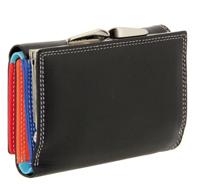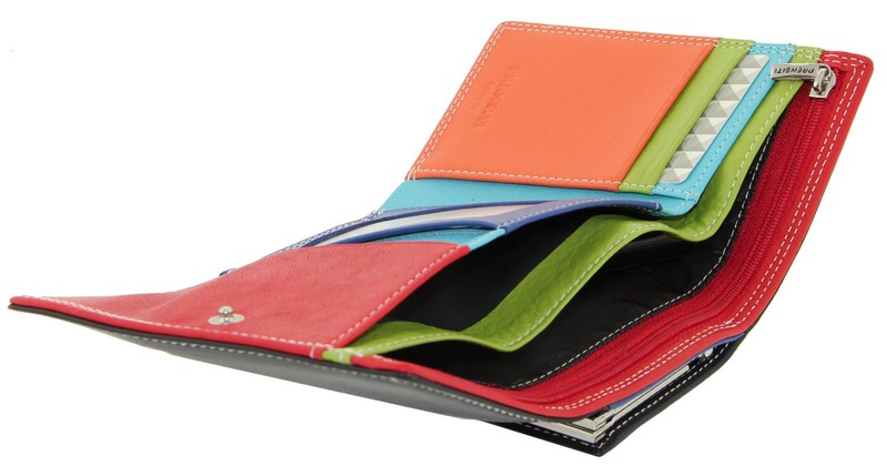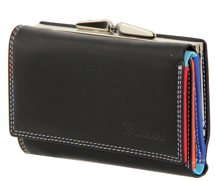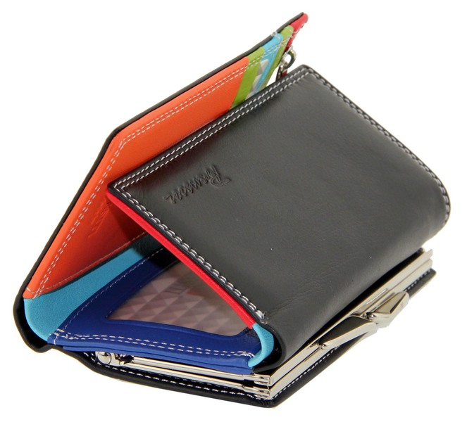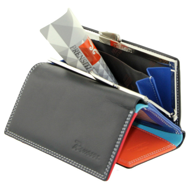 Кошелек кожаный черный с цветными отделами Prensiti