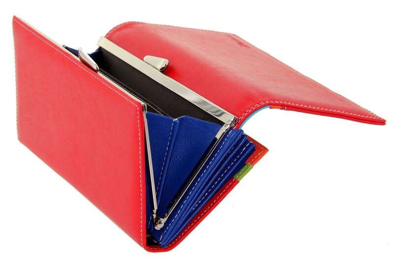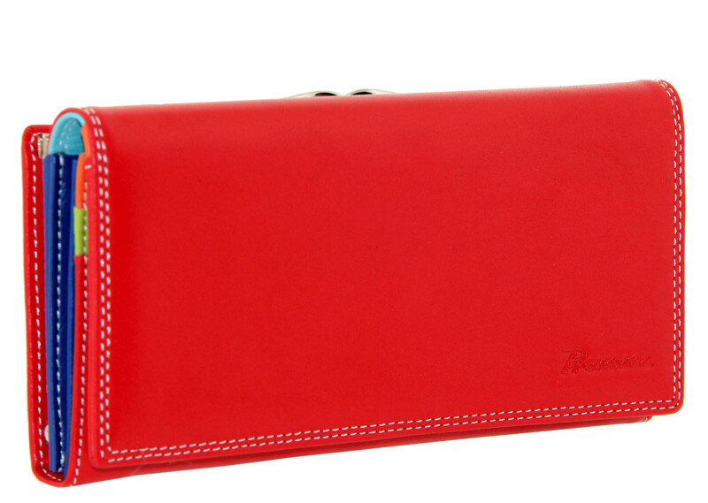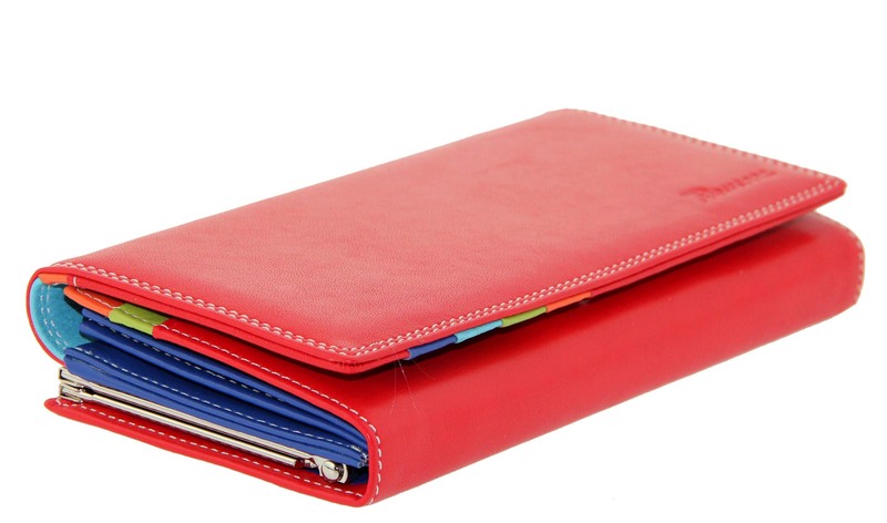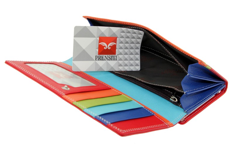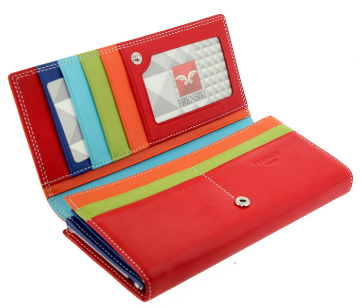 Кошелек кожаный красный с цветными отделами Prensiti