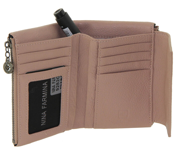 Кошелек кожаный пудровый Nina Farmina K 9282-15, Цвет розовый, размеры , 13 см x 9,5 см