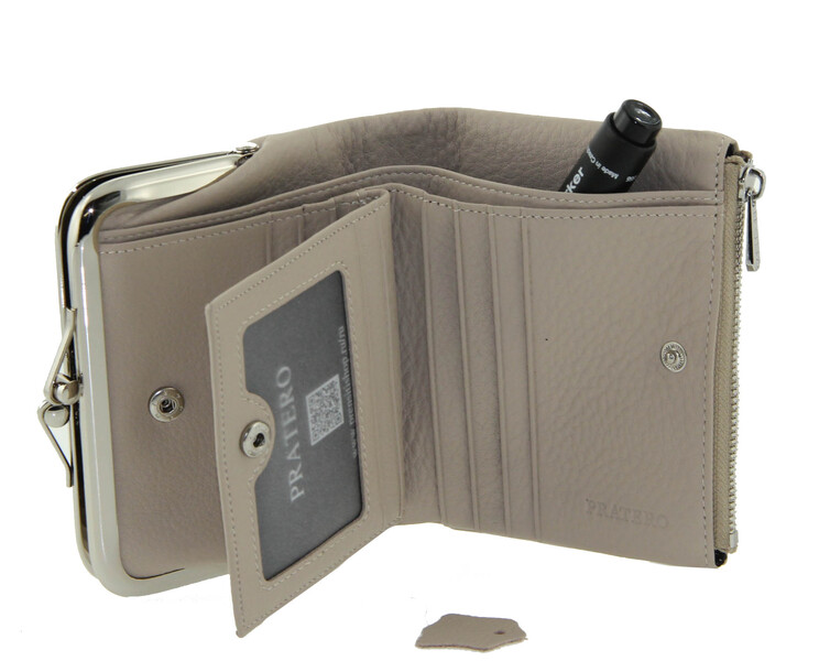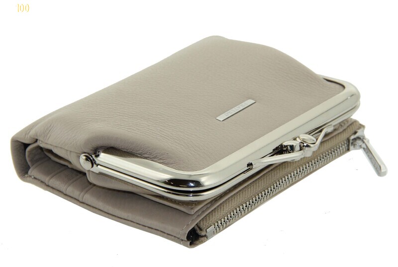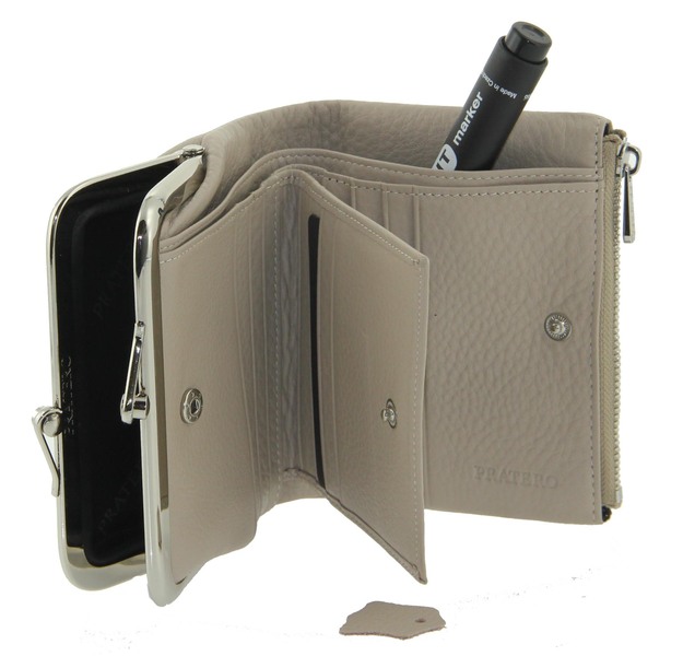 Кошелек кожаный складной женский бежевый поцелуй Pratero