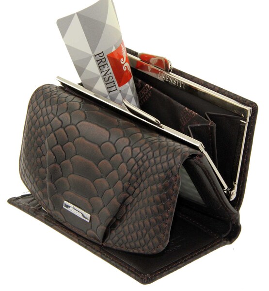 Кошелек кожаный женский коричневый рептилия Prensiti K 98623, Цвет коричневый, размеры , 12,5 см x 8 см x 3 см