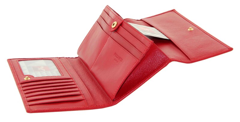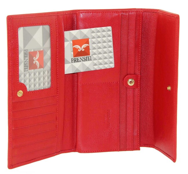 Кошелек кожаный женский красный складной Prensiti K 5415Е, Цвет красный, размеры , 19 см x 10 см x 2,5 см