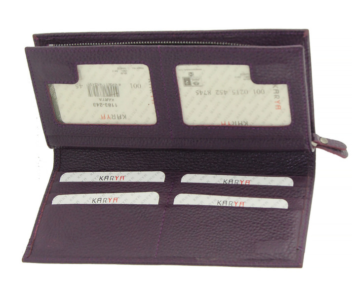Кошелек кожаный женский Турция KARYA 1183-243, Цвет фиолетовый, размеры , 20 см x 9,5 см