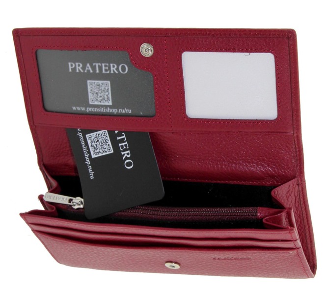 Кошелек натуральная кожа бордовый женский Pratero K 21081Z, Цвет бордовый, размеры , 18 см x 9,5 см x 2 см