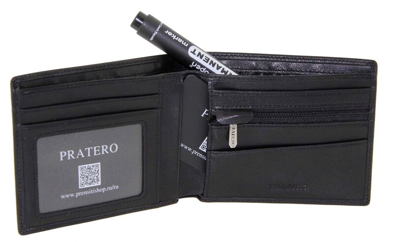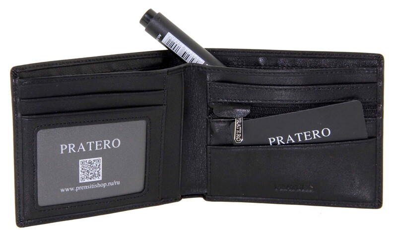 Кошелек натуральная кожа черный мужской Pratero K 20913, Цвет черный, размеры , 12,5 см x 10 см x 2 см