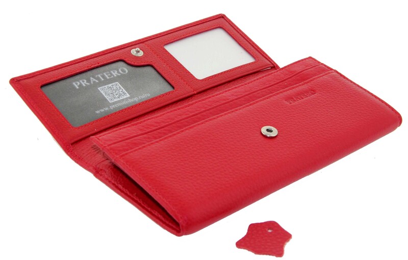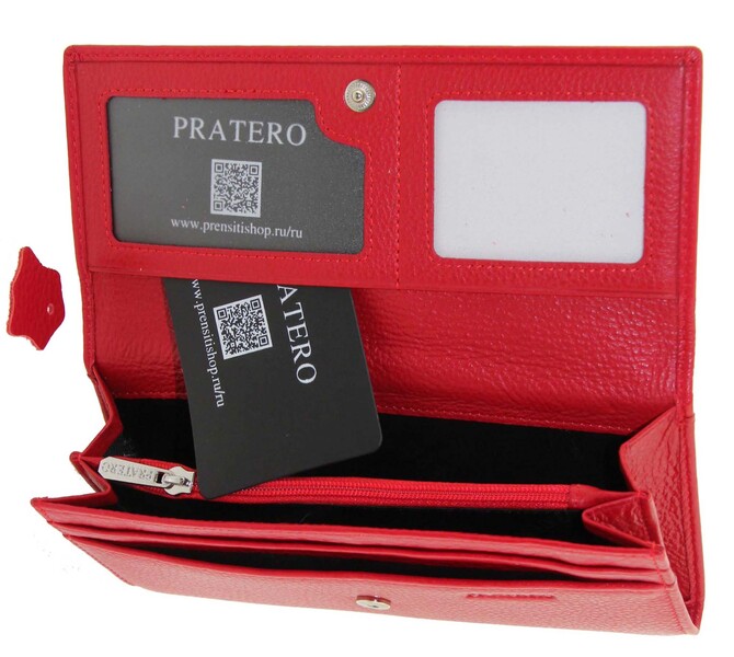 Кошелек натуральная кожа красный женский Pratero K 21081Е, Цвет красный, размеры , 18 см x 9,5 см x 2 см