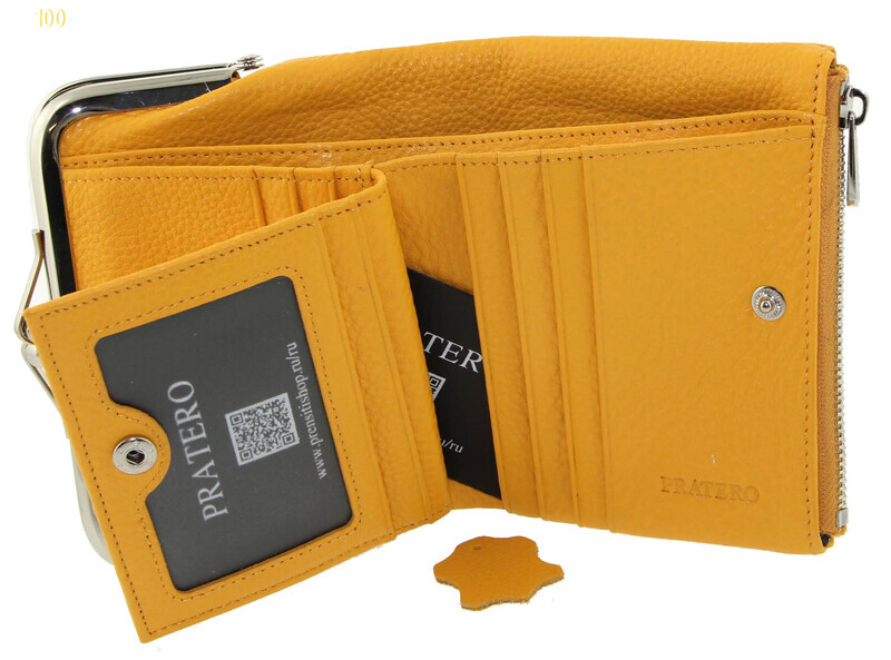 Кошелек натуральная кожа желтый женский Pratero K 21078J, Цвет желтый , размеры , 12 см x 9 см x 3 см
