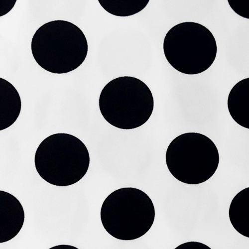 Костюмная ткань Барби крупный горох, цвет - черный горох на белом фоне. Размер гороха - 36х36 мм.