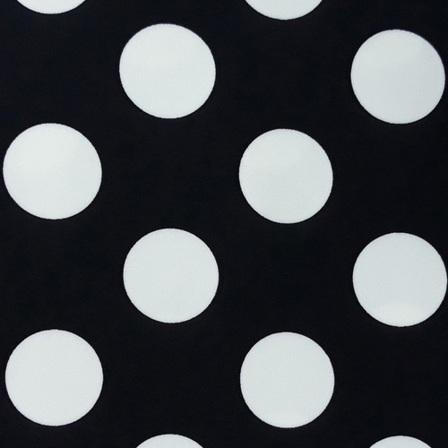Костюмная ткань Барби крупный горох, цвет - белый горох на черном фоне. Размер гороха 36х36 мм.