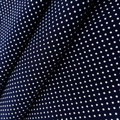 Костюмная ткань Барби мелкий горох, цвет темно-синий.