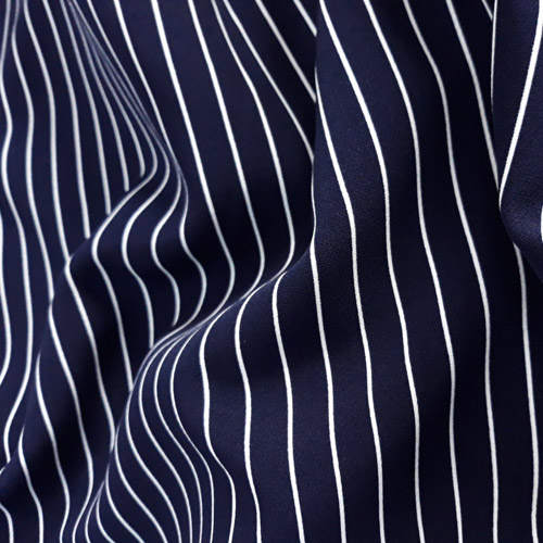 Костюмная ткань Барби узкая полоска. Цвет - белая полоска на темно-синем фоне, ширина между полосками - 1см.