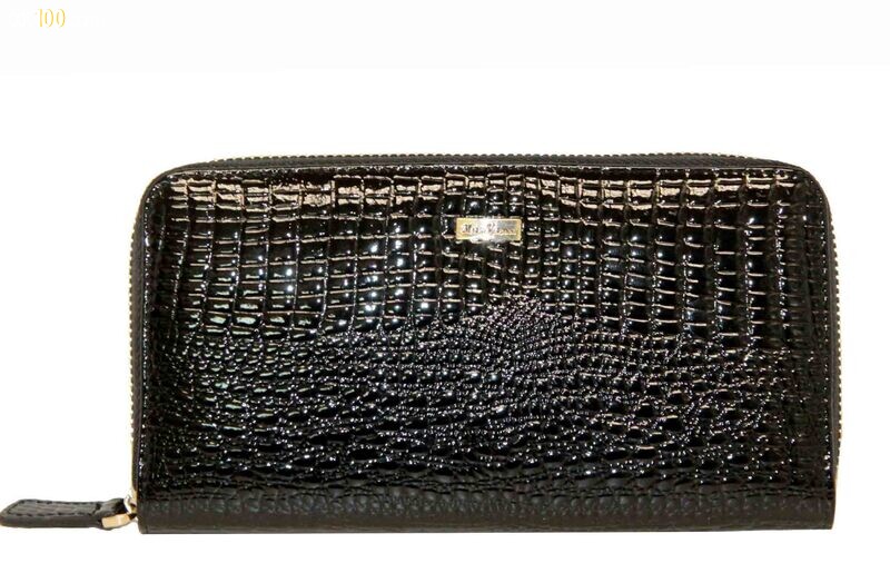 Кошелек кожаный лак черный Mario Veronni