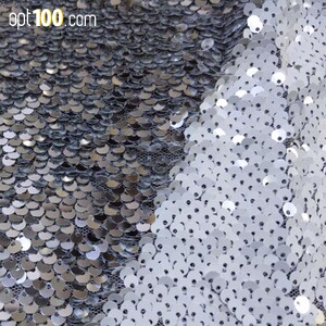 Пайетка двусторонняя на сетке, цвет - белый/серебро. Длина рулона от 40 метров, ширина 1,5 м.