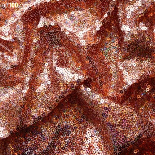Пайеточная ткань (пайетка) на сетке красное золото. Длина рулона от 40 метров, ширина - 1,3 м.
