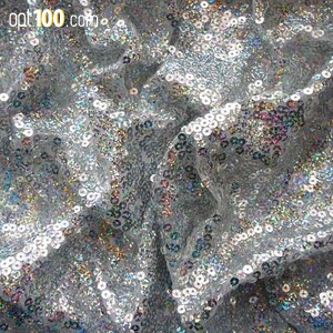 Пайеточная ткань (пайетка) на сетке серебро. Длина рулона от 40 метров, ширина - 1,3 м.