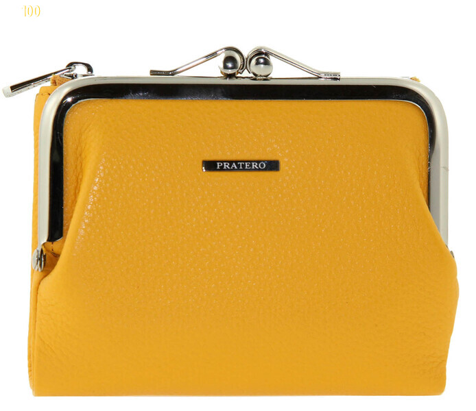 Кошелек кожаный складной женский бежевый поцелуй Pratero
