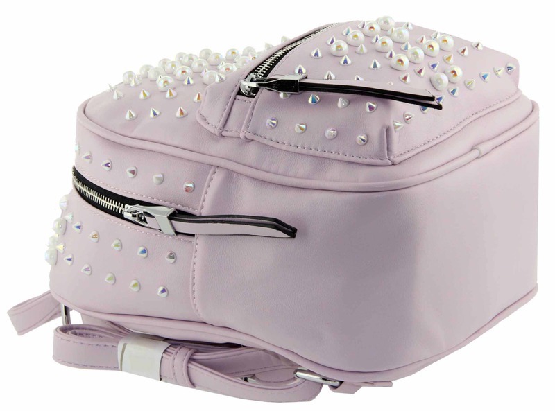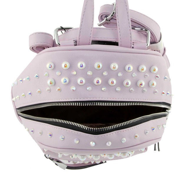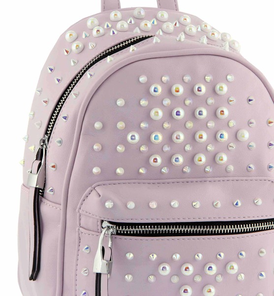 Очень нарядный небольшого размера рюкзак-трансформер с широким круглым входом. Выполнен из качественного кожзама и украшен жемчужной фурнитурой с перламутровым отливом. Конструкция включает ручку для комфортной переноски, которая одновременно выполняет роль лямок для рюкзака и также ручки через плечо. Отлично держит форму. На лицевой стороне внимание привлекает и объемный карман, который также украшен жемчужным бисером.