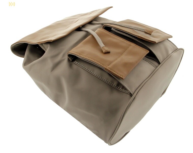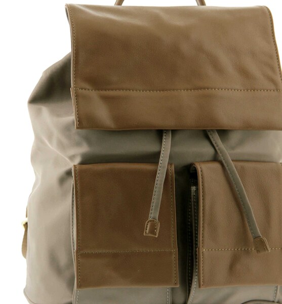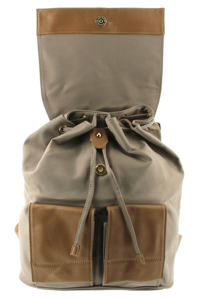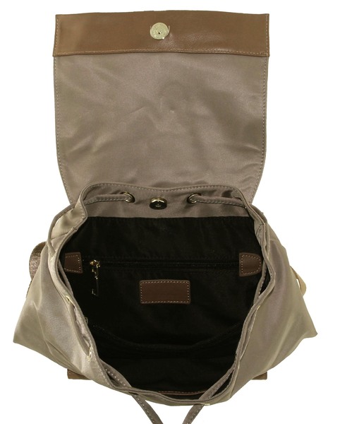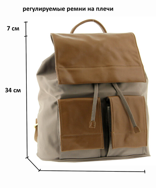 Рюкзак натуральная кожа с плащевой Оксфорд, с карманами и клапаном LMR 22629-6j, бежевый, Цвет бежевый, размеры , 29 см x 34 см x 13 см