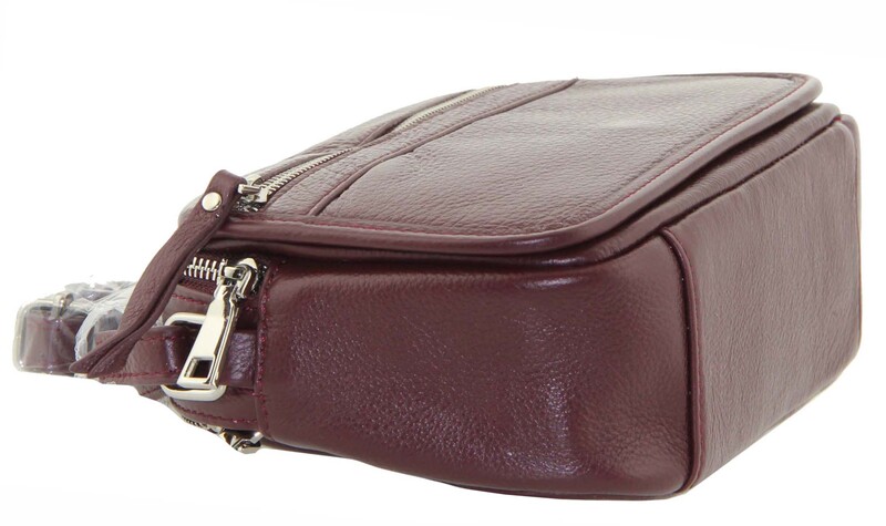 Сумка кожаная через плечо бордовая LEMOOR