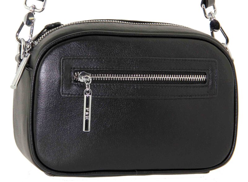 Сумка кожаная кросс боди через плечо Polina & Eiterou W 0812j, Цвет черный, размеры , 22 см x 14 см x 7 см