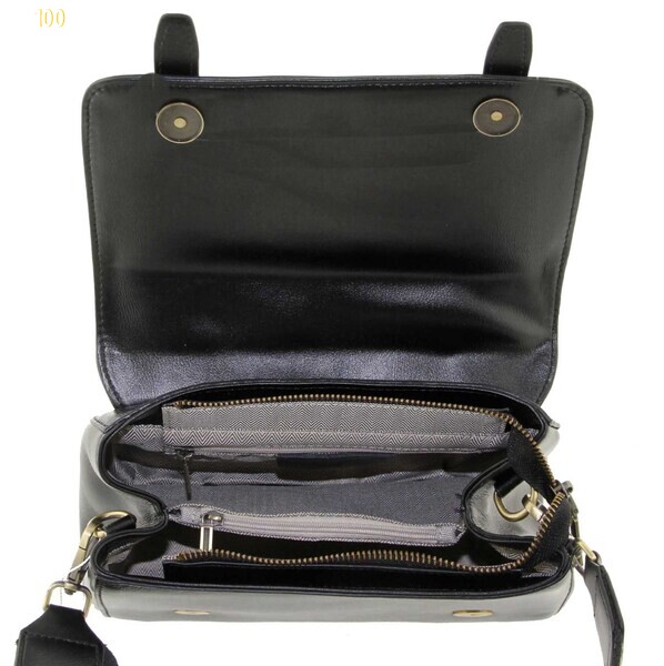 Сумка кожаная кросс боди через плечо с клапаном LMR 66711j, Цвет черный, размеры , 24 см x 17 см x 8 см