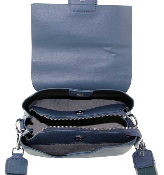 Сумка кожаная на три входа с клапаном LMR 81259-4j, Цвет синий , размеры , 24 см x 18 см x 10 см