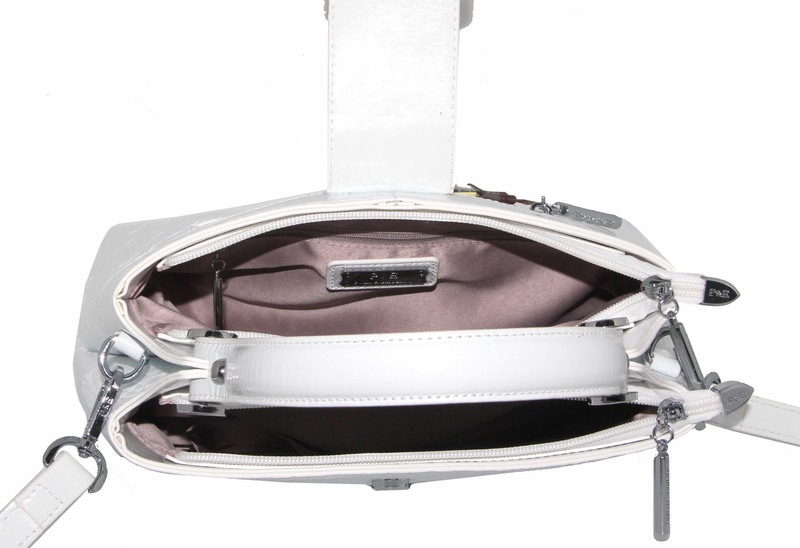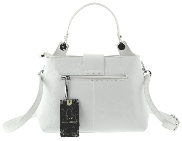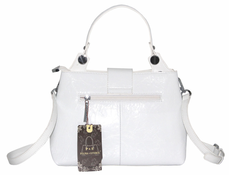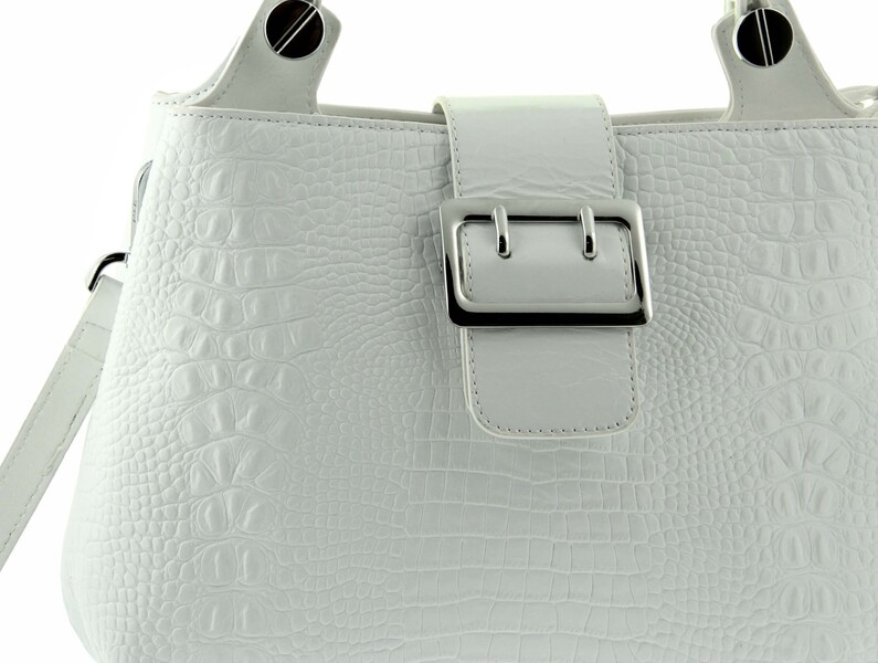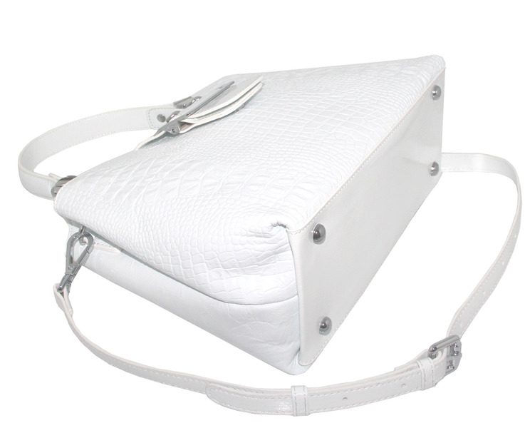 Сумка кожаная под рептилию, белый цвет, в руку, на плечо, на два входа, Polina & Eiterou W 1682j, Цвет белый, размеры , 31 см x 22 см x 12 см