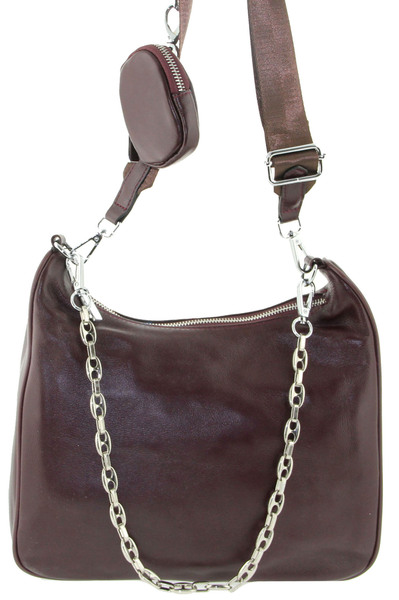 Сумка кожаная с кошельком и цепью LMR 2576-5j, Цвет бордовый, размеры , 30 см x 28 см x 8 см