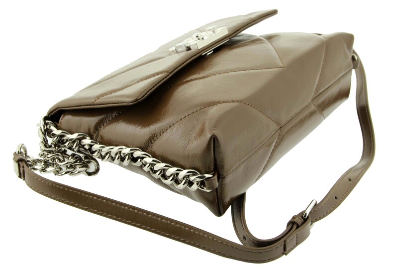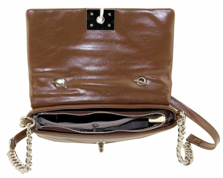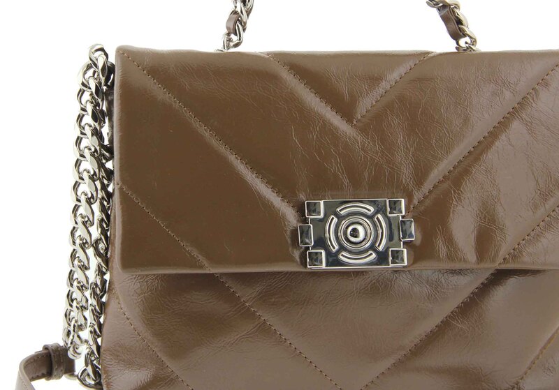 Сумка кожаная стеганная на цепочке LMR 115-2j, Цвет коричневый, размеры , 25 см x 19 см x 8 см
