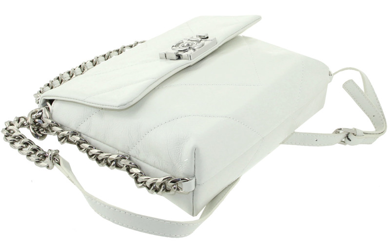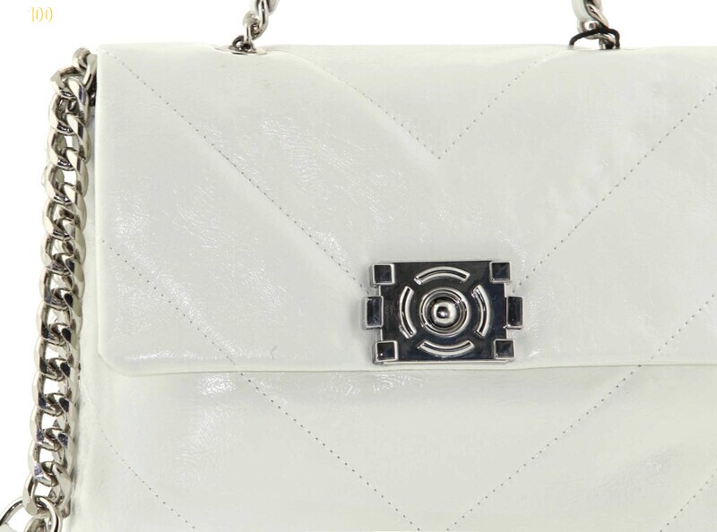 Сумка кожаная стеганная на цепочке LMR 115-11j, Цвет белый, размеры , 25 см x 19 см x 8 см