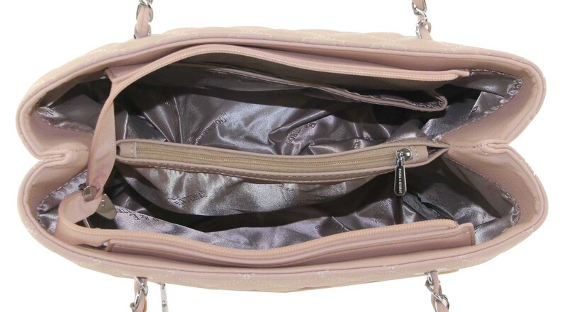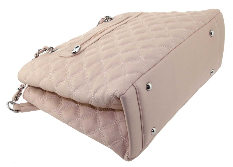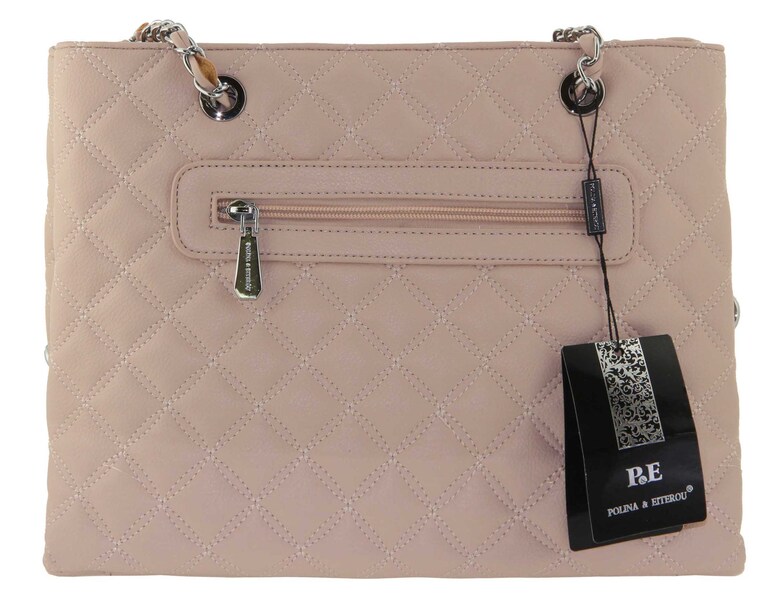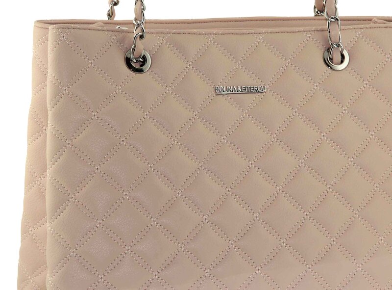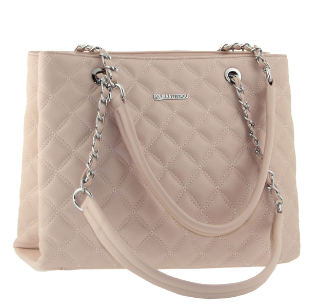Сумка стеганная розовая ручки цепи на плечо Polina & Eiterou W 3039-5j, Цвет розовый, размеры , 32 см x 24 см x 13 см