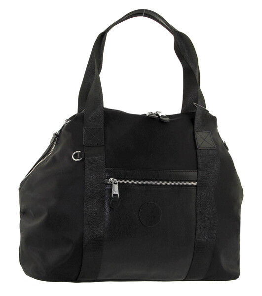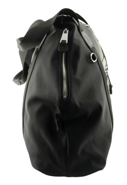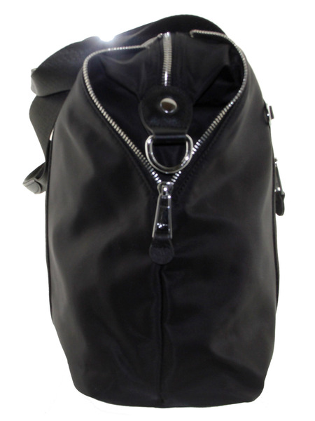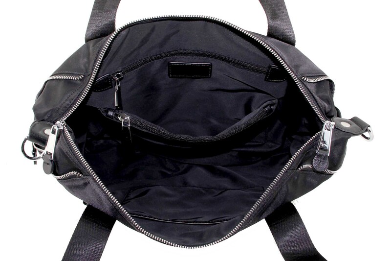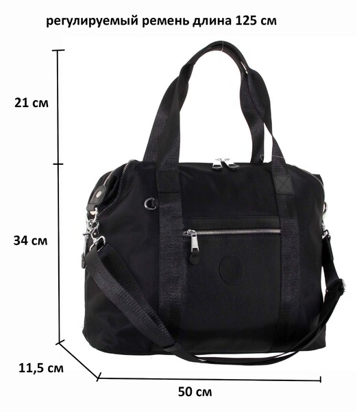 Сумка женская большая натуральная кожа с плащевой Оксфорд LMR 23217j, черная, Цвет черный, размеры , 50 см x 34 см x 11,5 см