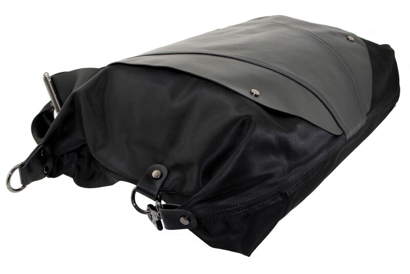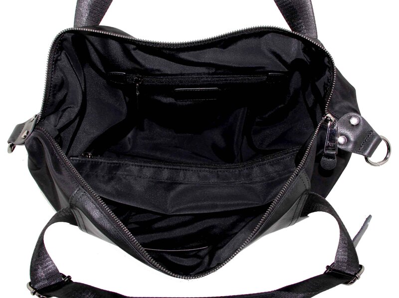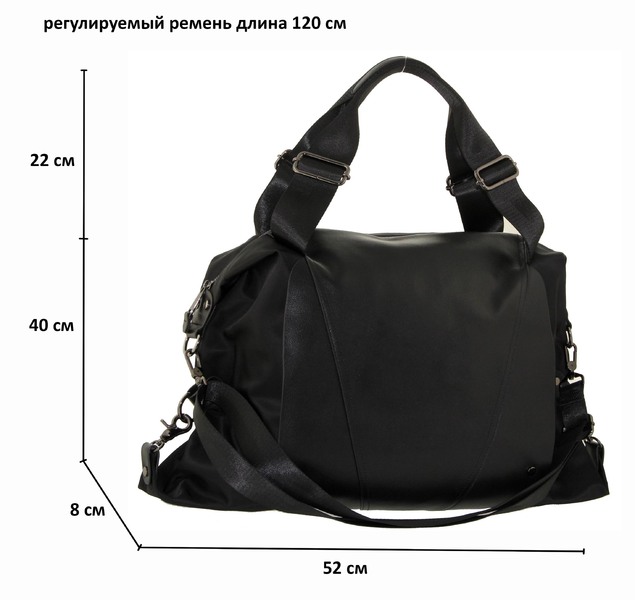 Сумка женская большая натуральная кожа с плащевой Оксфорд LMR 802j, Цвет черный, размеры , 52 см x 40 см x 8 см