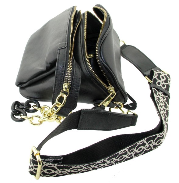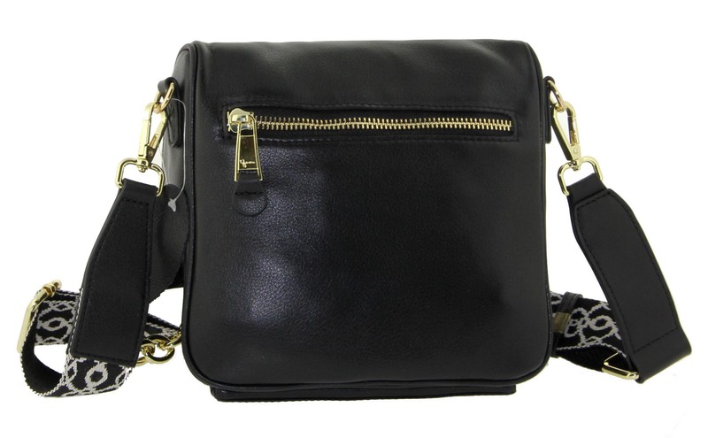 Сумка женская кожаная кросс боди через плечо черная LMR 21012j, Цвет черный, размеры , 20 см x 19 см x 12 см (верх)