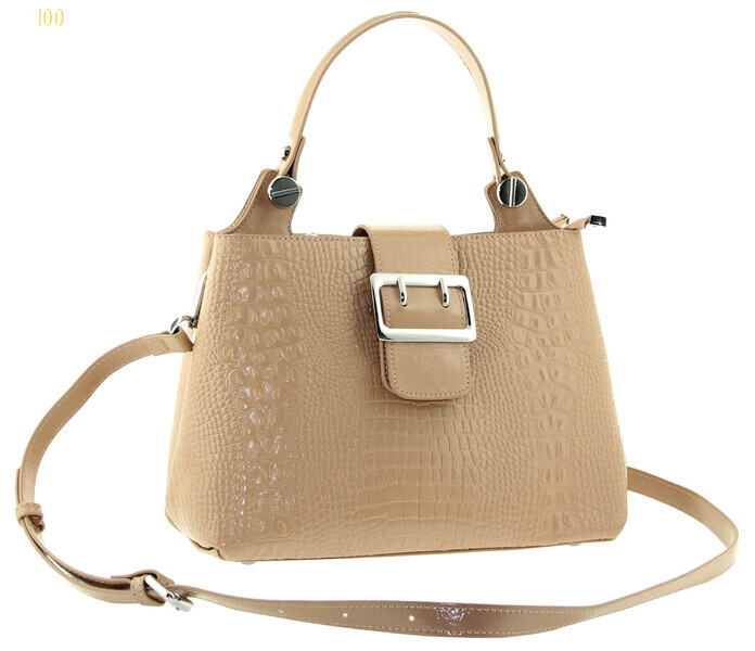 Сумка кожаная под рептилию, нюдовый цвет, в руку, на плечо, на два входа, Polina & Eiterou (Balina)Код товара: W 1682-2j